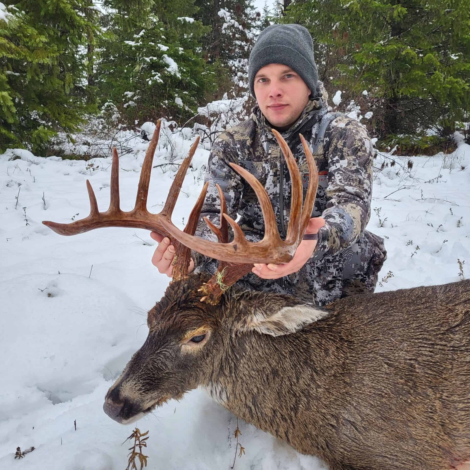 Trophy whitetail deer and mule deer are available to hunt in our wilderness, each providing a diverse and varied hunting experience. Whitetails are usually hiding in the creekbottoms and gullies, while mule deer are often at higher elevations in hemlock groves and clearcuts. No matter your preference, Shattuck Creek can provide the perfect hunting experience.
